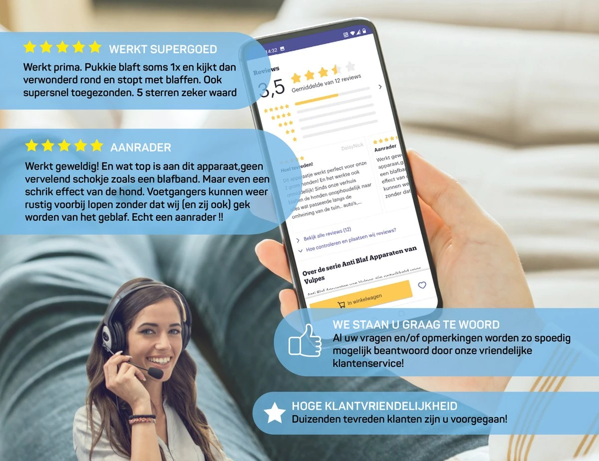 Vulpes Pets® Anti Blaf Apparaat Pro – Anti Blafband Voor Alle Honden – Luxe Hondentrainer – Diervriendelijk & Zonder Schok – Inclusief 9V Batterij – Waterbestendig – Ophangbaar – Instelbare Ultrasone Niveauregeling – 4 Standen